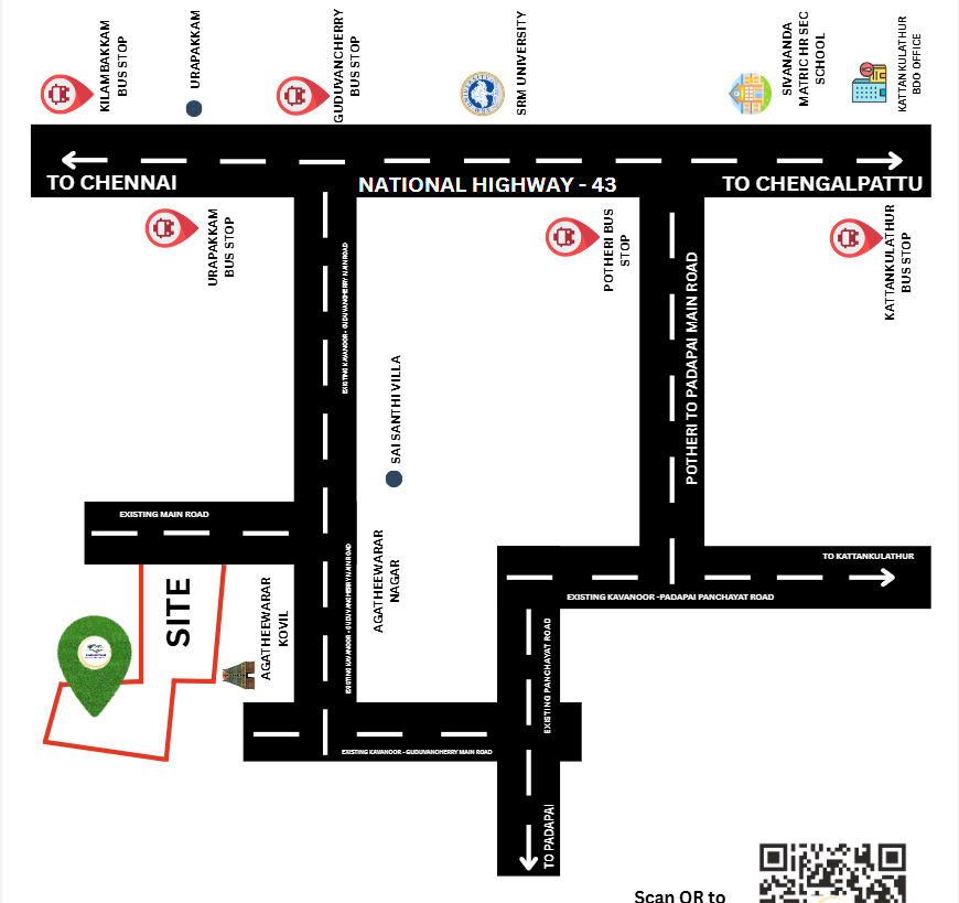 Our site boasts a prime location, *sandwiched between a well-developed CBSE school and an established Engineering College, making it an ideal choice for families prioritizing education. What's more, **Vedavalli Nagar is just 800 meters from SH-58*, ensuring excellent connectivity to Chengalpattu town and seamless access to the scenic ECR (East Coast Road).